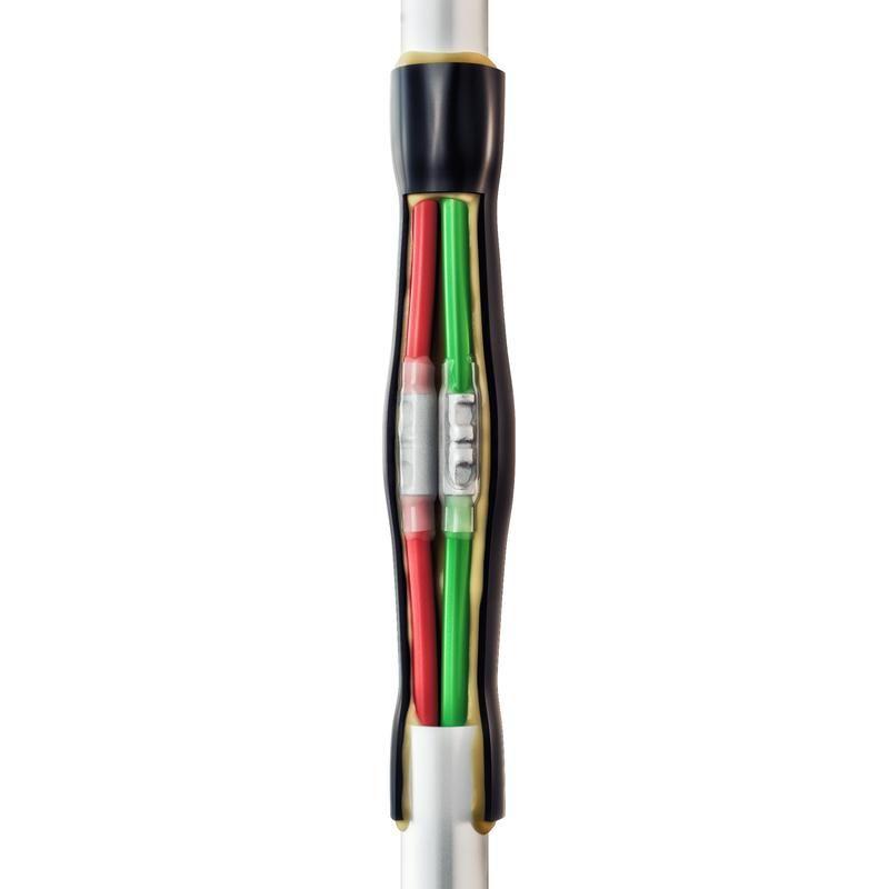 • Предназначены для соединения медных проводов и кабелей: • с пластмассовой изоляцией малых сечений (ПВХ/СПЭ) • на напряжение до 400 В • Соответствует требованиям ГОСТ 34839-2022 • Типы монтируемых кабелей: ПВС, ВВГ, ВВГнг, ВВГ нг-LS, NYM, NYY, ВБбШв, ВБВ, ПВББШП, ПВБВнг-LS, ВБбШнг(А), ПВББШнг(А) и др. • Для кабелей с броней используется непаяная система заземления. • Комплект универсален и может быть использован на 2-х, 3-х, 4-х или 5-ти жильном кабеле в диапазоне сечений от 1.0 до 10 мм2 • Состав муфты: • соединительные медные луженые гильзы ГМЛ(о) • соединительные термоусаживаемые манжеты с клеевым подслоем • защитный кожух со сплошным нанесением клея на внутренней поверхности • 2 пружины ППД (для муфт с броней) • провод заземления (для муфт с броней) • Муфта имеет два контура герметичности, представленных клеевыми термоусаживаемыми трубками для изоляции контактных соединений (цвет: прозрачный) и общей трубкой восстановления оболочки кабеля (цвет: черный) • Термоусадочные трубки с внутренним слоем термоплавкого клея обеспечивают качественную изоляцию и герметичность соединений • Трубки восстановления оболочки кабеля устойчивы к ультрафиолетовому излучению и погодным условиям • Прокладка в подземных кабельных каналах, трубах и непосредственно в грунте • Инструмент для монтажа: • для опрессовки гильз: пресс-клещи СТК-05, СТВ-05 • для термоусадки: высокотемпературный фен или портативные бутановые горелки «КВТ» • Выпускается по ТУ 3599-062-97284872-2014