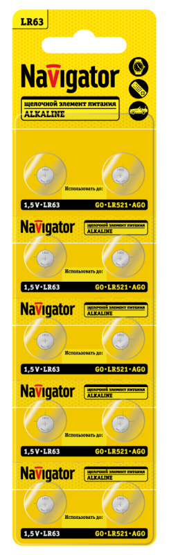 Элемент питания алкалиновый "таблетка" 95 664 NBT-07 (LR63 AG0 LR521 BP10) (блист.10шт) Navigator 95664 - smartlife-ural.ru – Екатеринбург