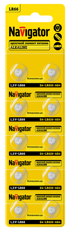 Элемент питания алкалиновый "таблетка" 95 666 NBT-09 (LR66 AG4 LR626 BP10) (блист.10шт) Navigator 95666 - smartlife-ural.ru – Екатеринбург