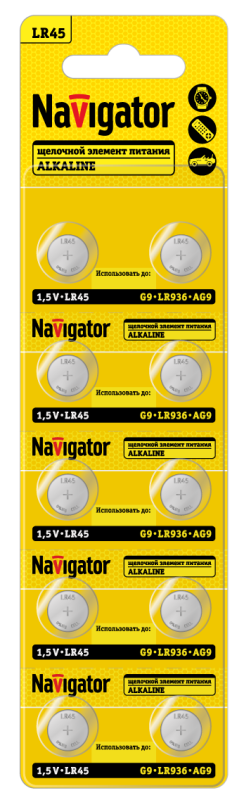 Элемент питания алкалиновый "таблетка" 95 670 NBT-13 (LR45 AG9 LR936 BP10) (блист.10шт) Navigator 95670 - smartlife-ural.ru – Екатеринбург