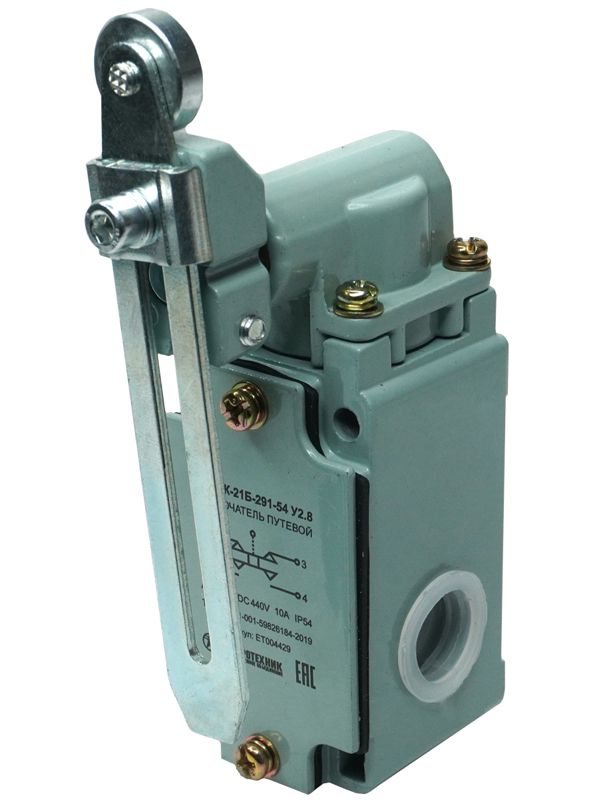 Главная/ Каталог / Датчики/сенсоры / Выключатель концевой / Выключатель путевой ВП15К-21Б-291-54 У2.8 IP54 рычаг с роликом регулир. по длине прямого действия Электротехник ET004429