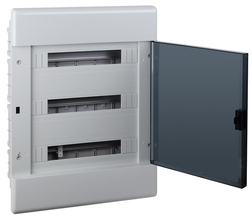 Главная/ Каталог / Электрические распределительные системы (в том числе электроустановочное оборудование) / Щиток распределительный малогабаритный / Щиток Тусо скрытая проводка на 54 модуля с дверцей 645х464х116мм (серый с прозр. дверцей) Ruvinil 68154СП