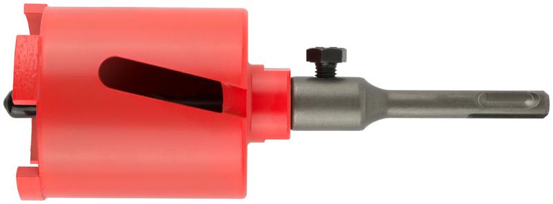 Коронка кольцевая алмазная КУРС с центрирующим сверлом и хвостовиком SDS-plus предназначена для безударного сверления отверстий под монтажные коробки в бетоне (в том числе армированном) и кирпиче. При работе требуется водяное охлаждение. Центрирующее сверло из легированной стали с наконечником из композитного карбид-вольфрамового сплава ВК6 позволяет точно позиционировать коронку и предотвращает ее смещение во время работы. Резцы коронки покрыты порошком из технических алмазов.