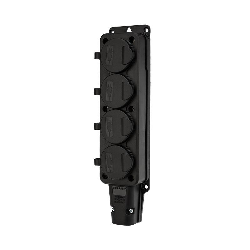 Розетка штепсельная четырехместная влагозащ. с/з 16А IP54 каучук Rexant 111-114