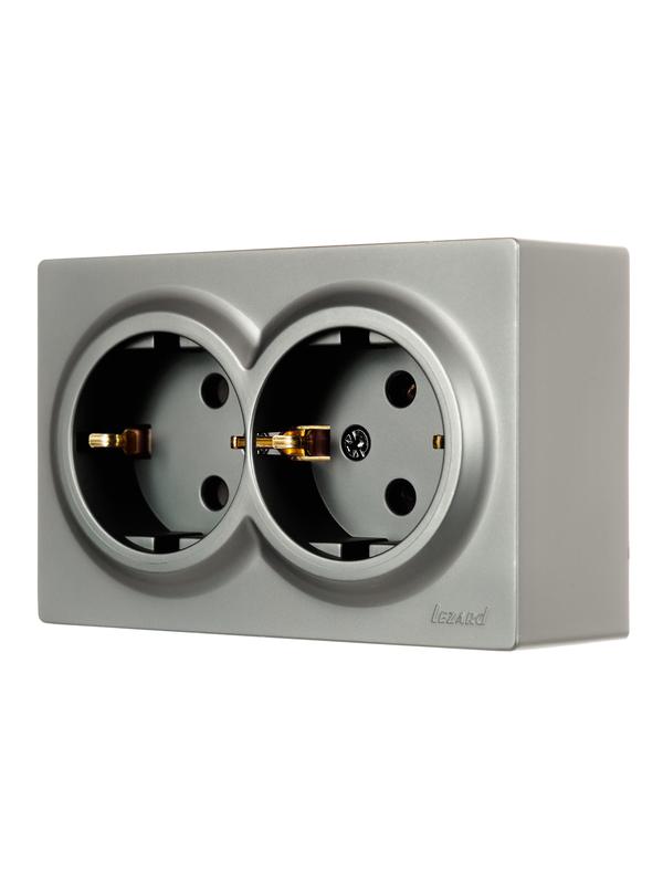Розетка 2-м ОП LETO с заземл. закрытый корпус ПБТ платина LEZARD 752-3500-127B