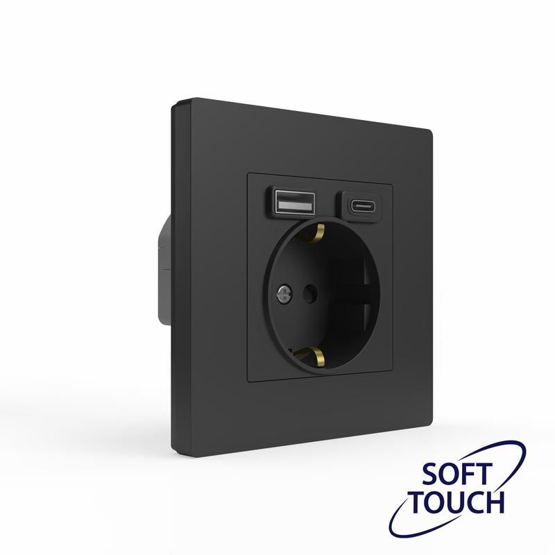 Розетка 1-м СП Pixel IP20 с заземл. с 2-мя заряд. устр. USB тип A+C механизм карбон TOKOV ELECTRIC TKE-PX-R1U2AC-C14