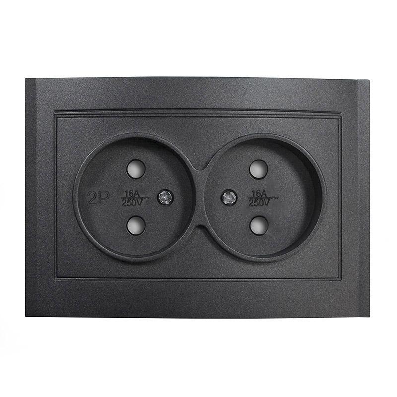 Розетка 2-м СП Бриллиант 16А IP20 без заземл. защ. шторки в сборе графит Universal 7947526-Gr