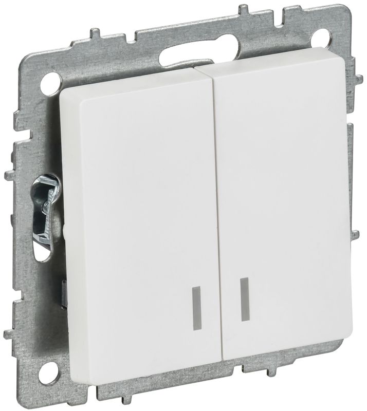 Главная/ Каталог / Электроустановочные изделия / Выключатели, переключатели / Выключатель 2-кл. СП BRITE ВС10-2-1-БрАБ 10А с индикацией механизм арктич. бел. IEK BR-V20-1-10-K91
