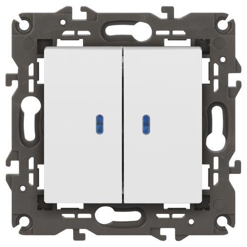 Выключатель 2-клавишный подсветка Эра Elegance белый 14-1105-01. Оснащён автоматическими клеммами для надёжной фиксации жил кабеля в механизме. Рамки приобретаются отдельно. Рамки Эра Elegance ПЛАСТИК: 1 пост 14-5001-хх, 2 поста 14-5002-хх, 3 поста 14-5003-хх, 4 поста 14-5004-хх, 5 постов 14-5005-хх; СТЕКЛО: 1 пост 14-5101-хх, 2 поста 14-5102-хх, 3 поста 14-5103-хх, 4 поста 14-5104-хх; МЕТАЛЛ: 1 пост 14-5201-хх, 2 поста 14-5202-хх, 3 поста 14-5203-хх, 4 поста 14-5204-хх; ДЕРЕВО: 1 пост 14-5301-хх, 2 поста 14-5302-хх, 3 поста 14-5303-хх, 4 поста 14-5304-хх (хх - код цвета: 00-прозрачный, 01-белый, белёный дуб, 02-слоновая кость, 03-алюминий, 04-шампань, 05-чёрный, чёрное дерево, 07-ясень, 09-дуб, 10-венге, 11-клён, 14-медь, 21-жёлтый, 22-оранжевый, 23-красный, 25-бордо, 26-лайм, 27-зелёный, 28-голубой, 29-синий, 30-розовый, 31-мокко, 32-серый, 41-сталь, 42-титан).