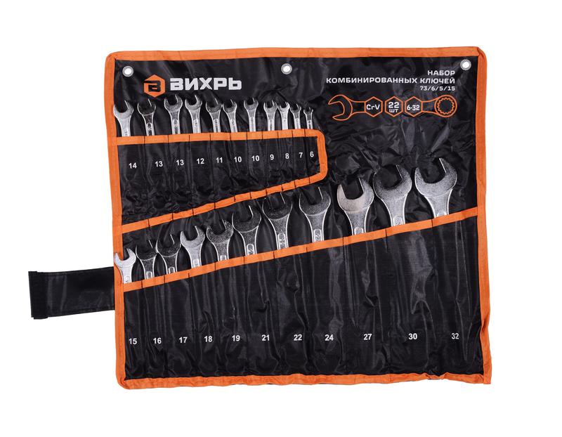 Набор комбинированных ключей 22шт 6-32 в чехле Вихрь 73/6/5/15