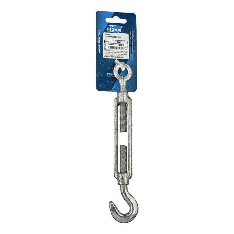 Область применения: применяется для изменения длины и регулировки натяжения стальных тросов, канатов, цепей при производстве монтажных, строительных и других видов работ. Не предназначен для грузоподъемных работ. Материал: углеродистая сталь с антикоррозионным цинковым покрытием. Особенности: рабочие нагрузки рассчитываются вдоль оси талрепа, боковые нагрузки не допускаются. Возможно многократное использование. Размер талрепа соответствует диаметру резьбы.