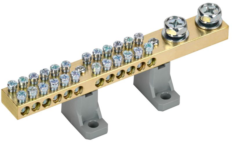 Шины типа ШНИ применяются при комплектации щитового оборудования и предназначены для электрического и механического соединения нулевых (N), защитных (PE) и фазных проводников. Крепление шины предусмотрено по центру (типы 8/1; 14/1) и по краям (типы 8/2 и 14/2) через изолятор нулевой шины на 35-мм монтажную DIN-рейку или через угловые изоляторы нулевой шины, а также непосредственно на панель щита. При подключении к шинам медных многожильных проводов рекомендуется оконцевание их наконечниками-гильзами. Конструктивно шины ШНИ и кросс-модули выполнены из латунной шины, установленной на пластиковый изолятор или в изолятор, изготовленный из самозатухающего пластика.