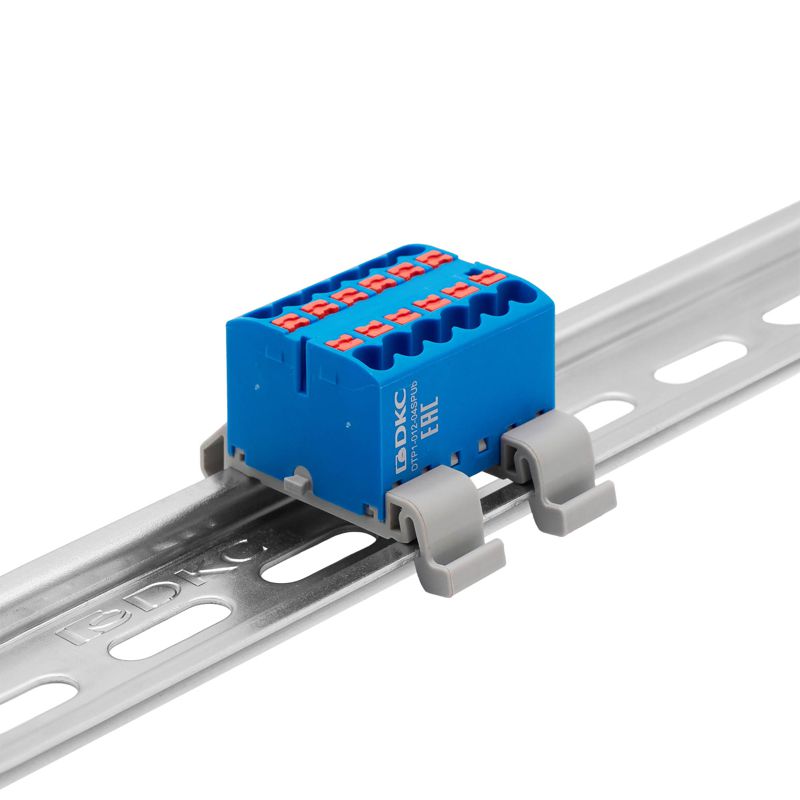 Главная/ Каталог / Колодки клеммные / Проходная клеммная колодка / Блок распределительный с горизонт. адаптером на рейку шир. 35мм зажим push-in 12 точек подключения 2.5кв.мм син. DKC DTP1-012-04SPUB-H