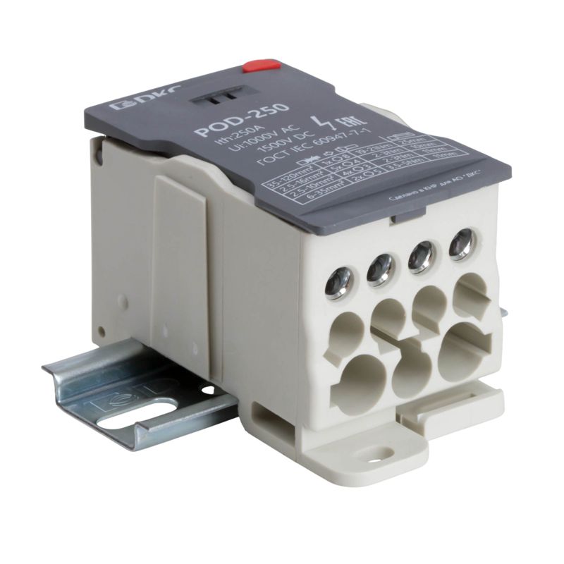 Главная/ Каталог / Колодки клеммные / Проходная клеммная колодка / Блок распределительный винтовой зажим 1х120кв.мм 2х35кв.мм 5х16кв.мм 4х10кв.мм DKC POD-250