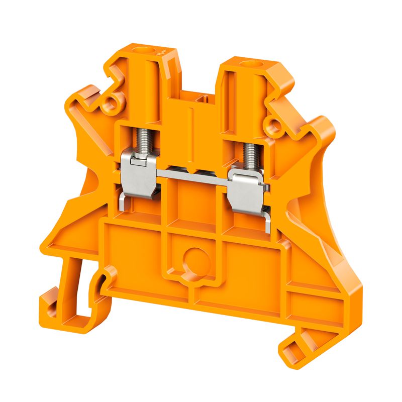 Оранжевый цвет, 2 точки подключения, 4 мм2. 2 канала для вставных перемычек. Габариты (В?Ш?Г) 47,5?53?6,2 мм.