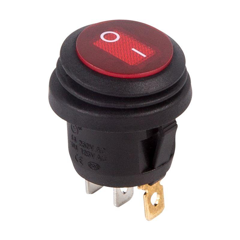 Выключатель клавишный круглый 250В 6А (3с) ON-OFF красн. с подсветкой "ВЛАГОЗАЩИТА" Rexant 36-2595