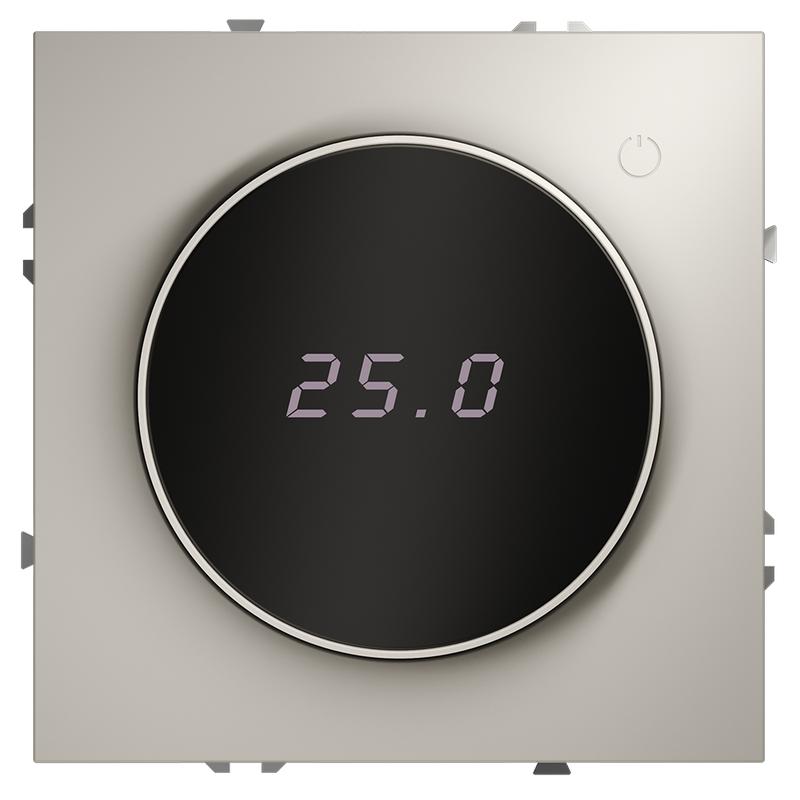 Место установки. Терморегуляторы Voltum предназначены для регулирования температуры теплого пола. Актуальны как в городских квартирах, так и в загородных дачных домах без центрального отопления. Корпус. Дизайн терморегуляторов Voltum сочетается со стилем остальных электрических устройств компании. Они совместимы со всеми рамками. Материал внешних декоративных элементов — поликарбонат. Конструктивные особенности. Терморегуляторы работают с любыми типами теплых полов и рассчитаны на нагрузку до 3500 Вт. Устройства оснащены светодиодной индикацией режима и дисплеем, на котором отображается температура поверхности пола. Красный индикатор — «подача питания на нагревательный кабель (идет процесс нагрева)», отсутствие индикации — «заданная температура достигнута». В течение 15 минут после нагрева терморегулятор переходит в интеллектуальный «спящий режим», уменьшая яркость подсветки цифр и сокращая энергопотребление. Регулировка осуществляется вращением панели управления. Терморегулятор поставляется в комплекте с механизмом из пластиковой накладки и датчиком температуры.