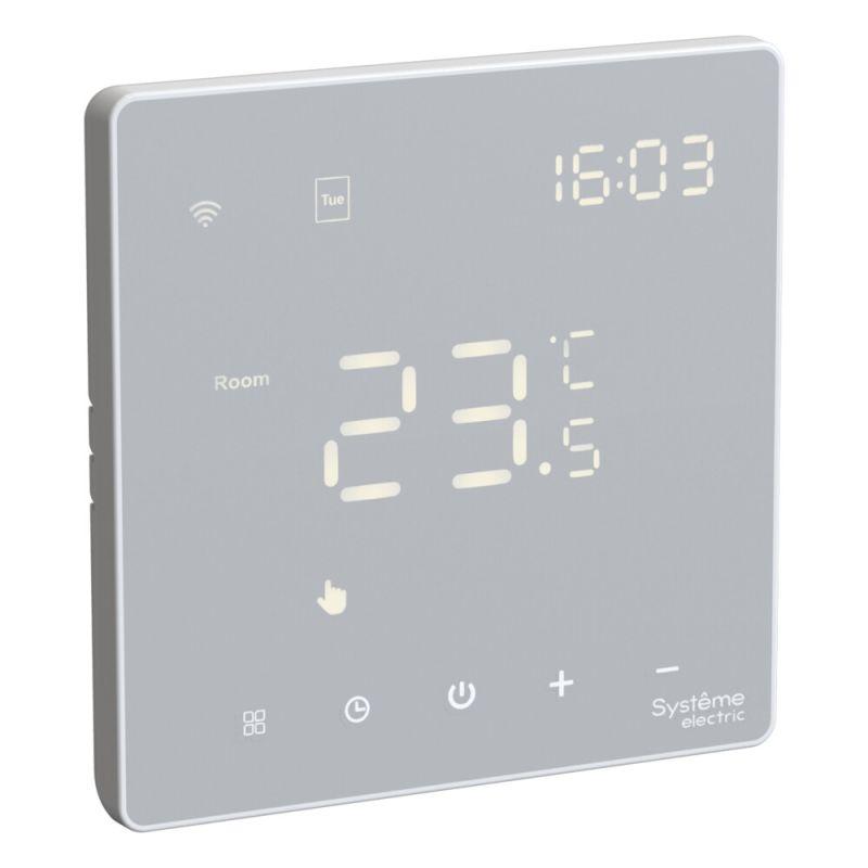 Термостат для электрического теплого пола Systeme Electric серии ArtGallery в белом цвете с Wi-Fi, 16 А Управлять теплым полом стало еще удобнее: • большой дисплей позволяет удобно сделать все настройки на самом устройстве; • можно установить расписание на неделю и включать теплый пол только утром и вечером; • два датчика: встроенный и выносной позволяют более точно регулировать теплый пол; • можно удаленно управлять теплым полом и включить его заранее по дороге домой.