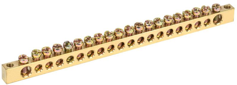 Применяются в щитовом оборудовании для подсоединения нулевых рабочих (N) и нулевых защитных проводов (РЕ). Крепление шины предусмотрено по центру (типы 8/1; 14/1) и по краям (типы 8/2 и 14/2) через изолятор нулевой шины на 35 мм монтажную DIN-рейку и через угловые изоляторы нулевой шины, а также непосредственно на панель щита. При подключении к шинам медных многожильных проводов рекомендуется оконцевание их наконечниками-гильзами. Выполнены из латуни.