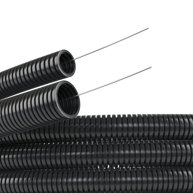 Труба гофрированная ПА 6 d23мм dвнутр.22.6мм dвнешн.28.5мм с протяжкой ПВ-2 черн. (уп.50м) DKC PA612329F2