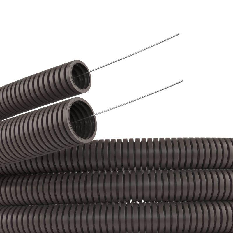 Труба гофрированная ПА 6 d29мм dвнутр.28.3мм dвнешн.34.5мм с протяжкой ПВ-0 темн. сер. (уп.25м) DKC PA612935F0