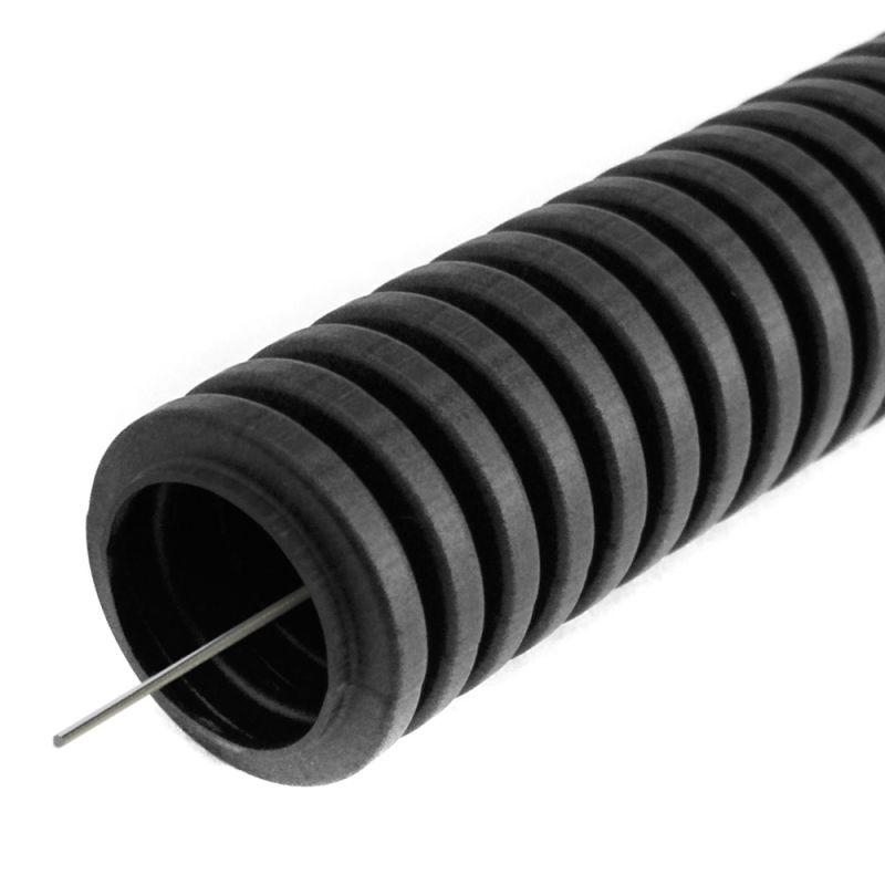 Труба гофрированная ПВХ легкая d25мм с протяжкой 350 Н черн. (уп.50м) Промрукав PR01.0057