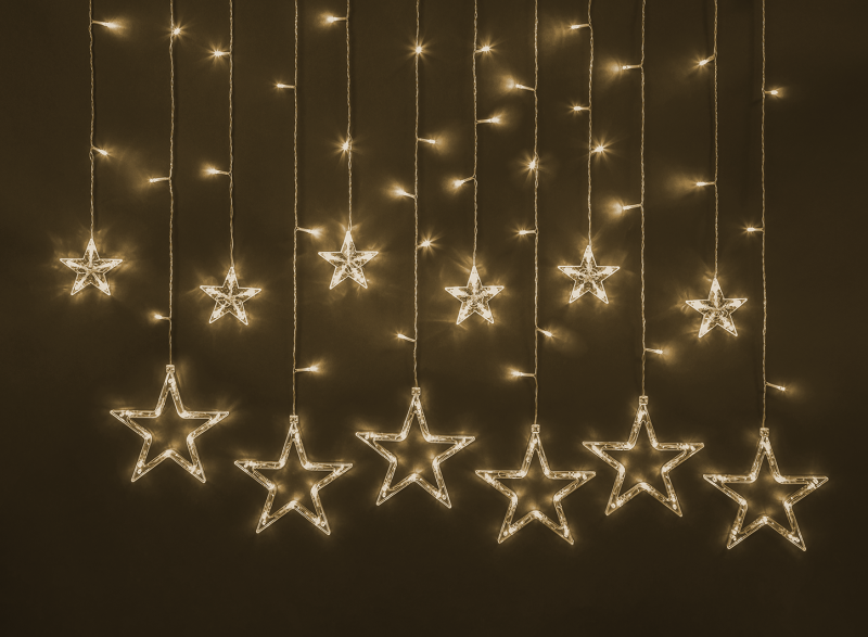 Главная/ Каталог / Светильники / Освещение иллюминационное / Гирлянда светодиодная "Бахрома" "Звезды" 93 679 NGF-D025-02 2.5х1м 138LED WW IP20 TR Navigator 93679