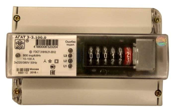 Счетчик АГАТ 3-3.100.0 3ф однотариф. МЗЭП 4680008523204