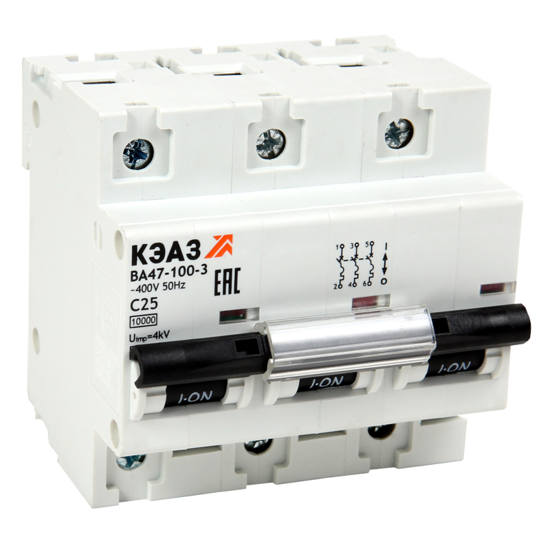 Выключатель автоматический модульный 3п B 50А 10кА ВА47-100-3B50-УХЛ3 КЭАЗ 318712
